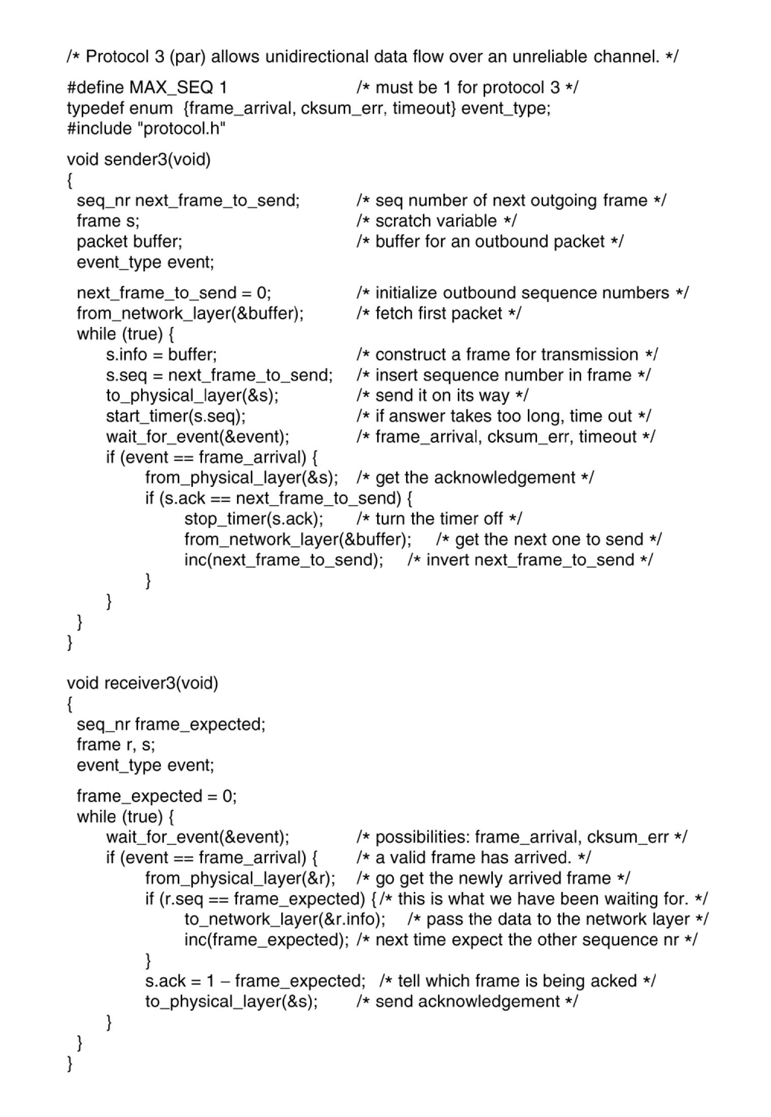 Receiver maintains frame_expected