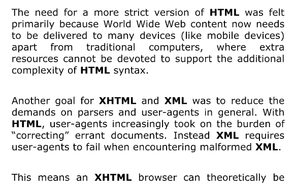 - Easier to process/display on small, low-memory devices (mobile browsers).