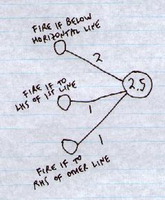 Then, like the bed/table/chair network above, we can have a net that fires one output for one complex shape, another output for another arbitrary complex shape.